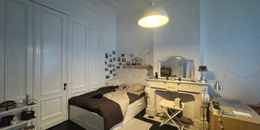 - Kamer met gedeeld sanitair en mezzanine op de tweede verdieping t.w.v. €450 (Kostencategorie A)